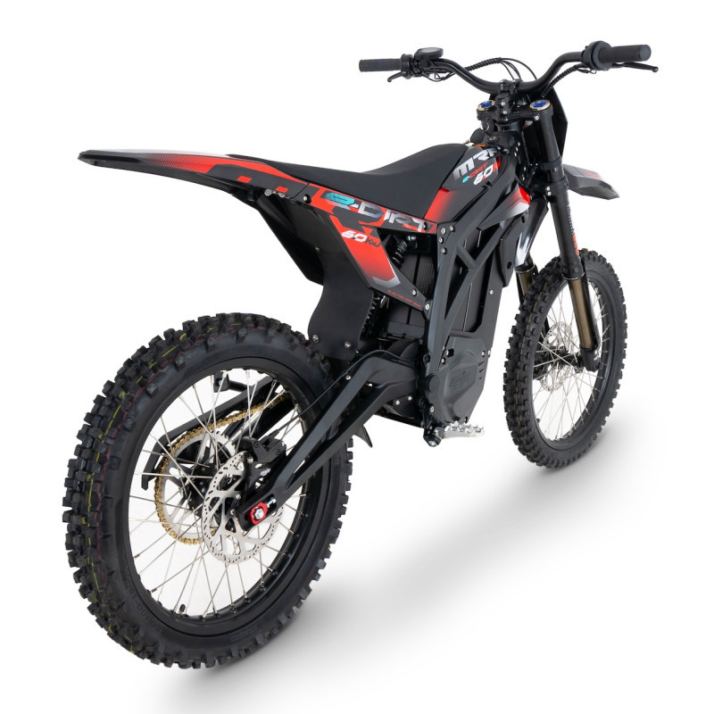 Sercem MRF eDirt 6.0 jest bezszczotkowy silnik elektryczny o mocy 6000 W, zapewniający błyskawiczną reakcję na gaz i świetną dynamikę. Motocykl przyspiesza do 50 km/h w zaledwie 4,02 sekundy, a jego prędkość maksymalna wynosi 75 km/h, co czyni go jednym z najmocniejszych elektrycznych dirt bike’ów w swojej klasie.