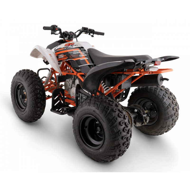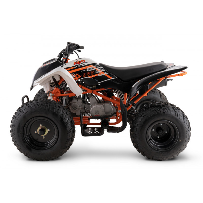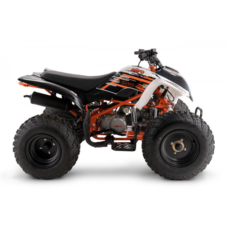 Quad Kayo A150 wyposażony jest w czterobiegową skrzynię biegów z przełożeniem wstecznym, wyświetlacz biegów w kokpicie oraz skuteczne hamulce tarczowe, co umożliwia bardziej doświadczonym użytkownikom cieszenie się wyczynową jazdą.