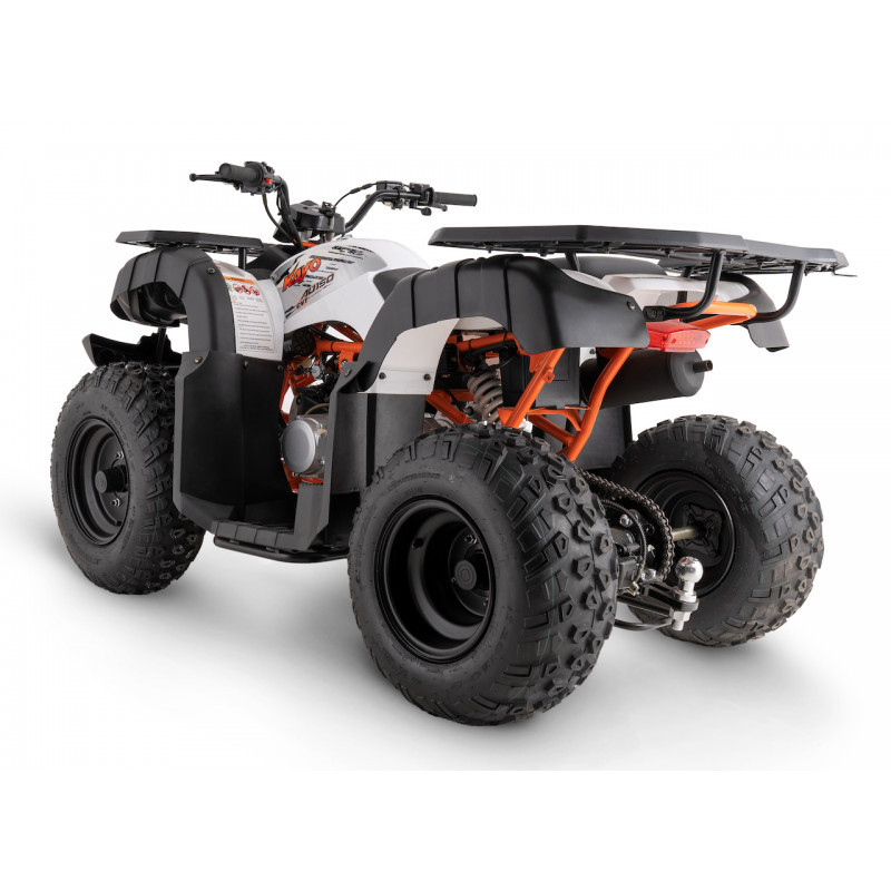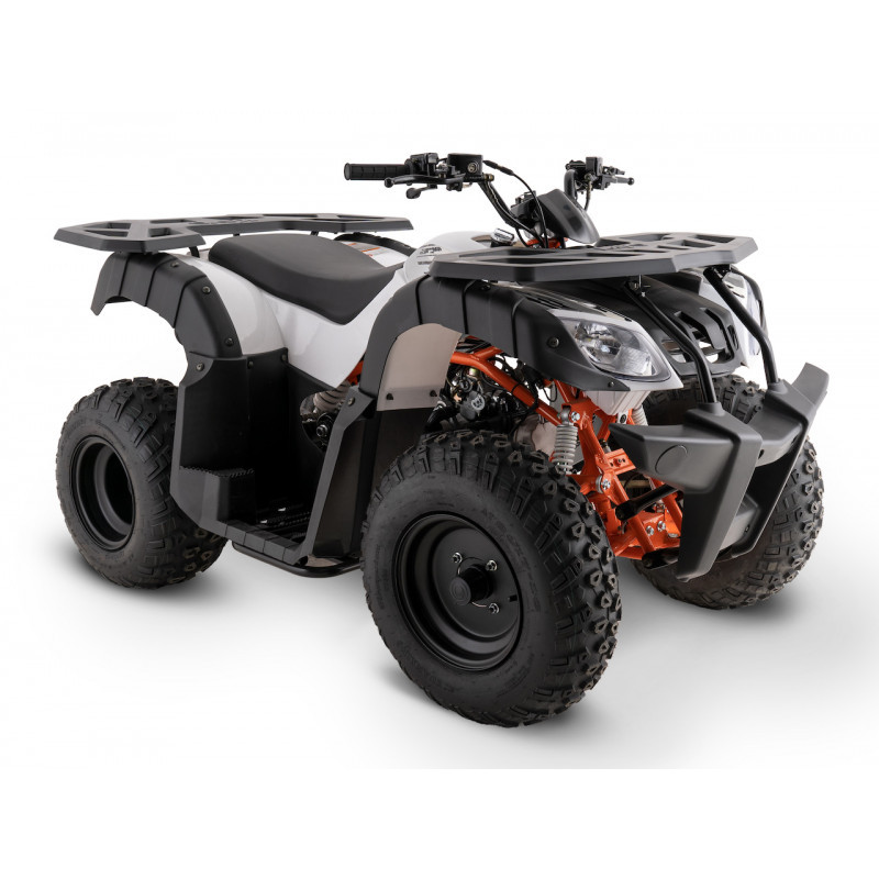 Konstrukcja quada została starannie zaprojektowana, aby zapewnić wysoki komfort oraz bezpieczeństwo podczas jazdy. Solidna rama wykonana z trwałych elementów stalowych, odpowiednio zabezpieczona, zapewnia bezpieczeństwo kierowcy i wytrzymałość pojazdu. Pojazd prezentuje się atrakcyjnie dzięki świeżemu, pomarańczowemu kolorowi i solidnej konstrukcji.