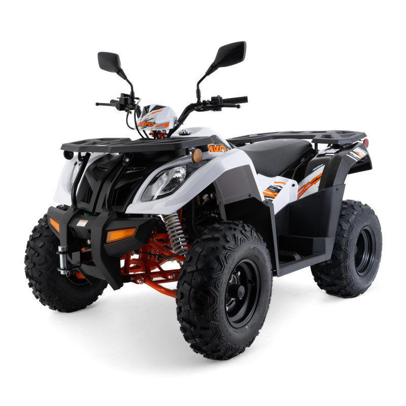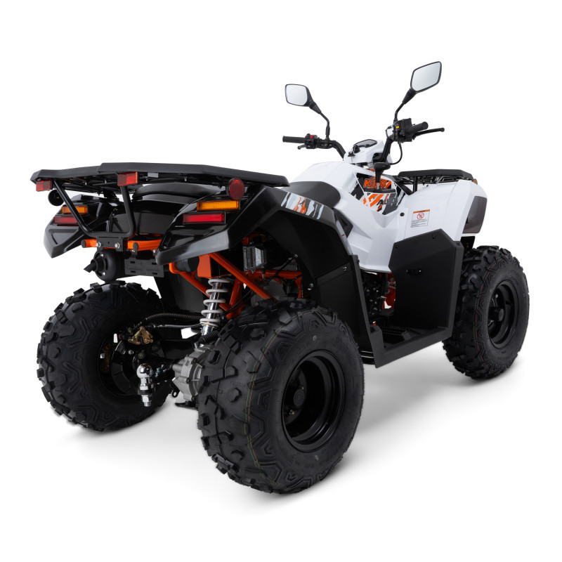 Stabilność i bezpieczeństwo jazdy zapewniają hydrauliczne hamulce tarczowe, solidna stalowa rama oraz koła w rozmiarze 10 cali z przodu i z tyłu. Wysokość siedziska wynosząca 83 cm gwarantuje dobrą pozycję za kierownicą i pełną kontrolę nad pojazdem. Quad waży 300 kg, co przekłada się na bardzo dobrą trakcję oraz pewność prowadzenia nawet w trudnych warunkach terenowych.